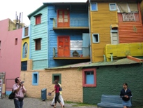 さて、最後の目的地、カミニートは・・・無事にバスで乗り入れることができた。5月広場に入れなかったこともあり、ここでの滞在時間を長くしてくれたことも、私にとっては超ラッキーであった。なんてったって、ここに来るために参加したツアーですから。 カミニートは、ボカ地区出身の画家キンケラ・マルティンにより造られた、原色で色鮮やかに塗られた建物や壁が並ぶ100mほどの路地公園である。だから観光は10分くらいで終ってしまうのだが(苦笑)、せっかくだから来てみたかったのだった。また、ボカ地区はタンゴ発祥の地と言われている。カミニートを少しはずれると、そんな雰囲気がたっぷりするが、確かに少し危険な感じがする。だんなが、変なオヤジにお金をせびられたりしたので、慌ててカミニートに戻った。そう言えば、ガイドのオネエさんが、「昨日も殺人事件が起って・・・」って言ってたっけ。隣人同士の諍いが原因で、旅行者は問題ありませんと、慌ててフォローしていたけどね。 周りのお土産屋を覗き、かわいい色鉛筆を見つけたので、自分用とガイドブックを貸してくれただんなの後輩のお土産に買う。時間になったので、バスを駐車したところに行ってみると、私たちのバスがなかった。一瞬不安になるが、同じツアー客がチラホラいたので安心。程なくして、バスがノロノロと私たちの前に姿を現したのであった。バス停やカミニート付近には警官が立っていたし、思ったほど危ない感じではなかったが、やはりなんとなくウサン臭いのは事実である。まあ、なにはともあれ行けてよかったと、小汚いラプラタ川を眺めながらニンマリしたのであった。