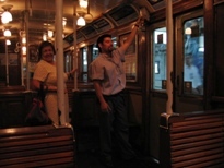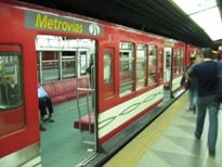 さて、歩いているうちに、私は懸案事項を思い出した。地下鉄B線には、丸の内線の古い車両が走っていて、それを見たいと思っていたのだ。ちょうど行く手にB線の駅があるので、そこまで行って地下鉄に入った。モアッとする空気の中に、それはあった。だんなが言うには、クーラーが装備される前の車両じゃないか、とのこと。ブエノスアイレスの地下鉄はエアコンがないようで蒸し暑い。でも、日本の裏側で丸の内線の車両が走ってるなんて!嬉々として写真を撮る。続いてA線へ。1913年の開通で、当時東京に地下鉄を作ろうとしていた日本から視察団が派遣され、そして完成したのが銀座線とのこと。これが、ライトとか本当にクラシカルでステキだった。テンション上がった状態で写真を撮っていたら、オバチャンに笑いかけられた。係員のオニイさんが、上部のハンドルを引かないと開かないドアもある。おニイさんが、「この辺全部、木でできてるんだよ」と壁を叩いて教えてくれた(推測)。