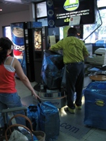 翌日はイグアスへ出発するため、チェックアウト後ホテルでお願いしたタクシー(ハイヤー?)に乗り込む。国内線の空港に到着し、いざチェックインしようとしたら、無料でチェックインする荷物をラッピングしてくれるというのでお願いした。青いサランラップのようなものでグルグルと繭を作るかのようにラップしてくれる。これに、どれほどの効力があるのか知らないが(苦笑)、ペルーでもアルゼンチンでも当たり前のように、この機械はあった。ちょっと試してみたかったのでラッキーであった。 |