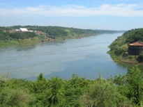 電車を降りた後は、あちこちの遊歩道を歩いて、あらゆる角度から滝を眺めた。時間が足りなくて(17:00まで)サン・マルティン島に渡ることはできなかったが、十分にイグアスの素晴らしさを堪能することができたと思う。 ホテルに戻り、フロントで「ビザなしでブラジル側に行けるか」聞いてみた。ロビーで待っていたら、先程とは違うタクシーの運ちゃんがやってきて、200ペソ(入場料込み)で問題なく行けるとのこと。さっきの人より10ペソ高いが、ホテルがアサインした人であることに安心感があったので、お願いすることにした。だって、翌日そのまま空港に行くことになるから、荷物をタクシーに乗せたまま観光しなくてはならない。10ペソは保険みたいなものだと言って、ちょっと考えてるだんなを説得したのであった。 |