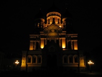 | 高台へ向かう道も闇に包まれつつあり、とても良い雰囲気。特にライトアップされたアレクサンドル・ネフスキー教会は、とても綺麗だった。あちこち写真を撮って、聖オレフ教会にも寄りながら港へ戻っていったら、案外時間がなくなってきた。船着場付近に差し掛かり、今度は長い登り階段を登って真っ直ぐ突っ切ることにした。ところが予想以上に階段がキツい。迂回する道と、どっちがいいのかわかんないなあ。ていうか、この高台なんのためにあるわけ? なんとか登り切って真っ直ぐな道を抜け、下り階段の近くまで来た時に、「リンダ・ラインの船に乗るの?」とすれ違った東洋系の男性に英語で声をかけられた。 |