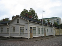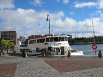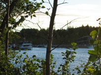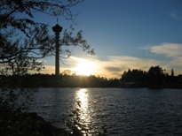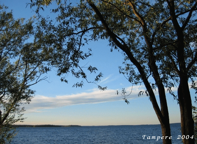 | ●タンペレ '04年9月13日(月)〜14日(火) 青空が広がり、湖や森が見える車窓は、西日を受けて本当に綺麗だった。タンペレ駅に着いた私達は、まずは荷物を置きにホテルへ。その後、今まで午前は曇ることが多かったので、青空が広がっている今日のうちに湖を見に行こうということになり、結構な距離をてくてくと歩いた。フィンランドは森と湖の国なのだが、特にここタンペレを中心としたフィンランド中部は、湖水地帯となっている。湖の形もいろいろで、まるでこの辺の土地自体が浅瀬の岩場のようだ。タンペレには湖が2つあり、今向かっている方にはヴィラトとの間を結ぶ「詩人の道航路」、もう一方にはハメーンリンナと結ぶ湖沼巡りの観光船「シルヴァー・ライン」の発着点となっている。ま、今はオフシーズンで動いてないのだが。ちなみにガイドブックに寄ると、この2つの湖には18mもの水位差があり、この落差を利用した水力発電によって、タンペレは国内屈指の工業都市になっている、ということだ。 |