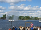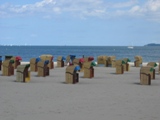 ●トラヴェミュンデ '05年5月21日(金) ここまで来たんですもの。「ドイツの海」を見たいではないか。しかもバルト海。この機を逃したら、二度と見れないかもしれない。まあ、どこででも海は海なんだけどさ(笑)。今は当然オフシーズンのトラヴェミュンデは、それでも結構人がいた。みんな海岸沿いのプロムナードを優雅に散歩している。バルト海は、少し緑がかった青に乳白色を混ぜたような優しい色。浜辺には箱型のビーチチェアが並んでいた。椅子の上部がパカッと後ろに傾く仕掛けらしい。面白い形である。リゾート施設アクアトップ近くでは、何故か子供達が凧揚げに興じていた。ヨットもたくさん出ていたし、大きなフェリーが港から出て行ったりと、なかなかの賑わいだ。ダイビングスーツを着ている人もいた。何をするわけでもなく海を眺め、ビールを飲み、売店のおばさんに写真を撮ってもらったりして過ごす。 |