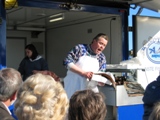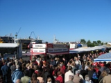 ハンブルク最終日は、朝早くからフィッシュマルクトを見に出かけた。これが、呼び込みの大声があちこちから聞こえるなかなかの活気で、とても面白かった。私は、ドイツでこんな風に声を出す市場を今までに見たことがない。だから、たぶんドイツ人も面白いのだろう。買うわけでもないのに、その口上を聞くために人垣が出来ている屋台もあった。魚以外にも、籠に山盛り入ったフルーツや植物、そしてアンティークの屋台までズラッと並び、すんごい人ごみである。