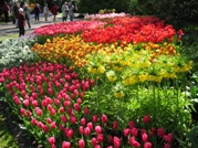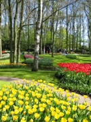 ●キューケンホフ '04年4月23日(金) さて、いよいよお待ちかねのキューケンホフ公園だ。一路リッセ方面へ向かう。公園の近くにもチューリップ畑が広がっていて、後で絶対行こうと心の中で誓った。園内は、夢のように美しかった。チューリップ以外にも、様々な花が植えられ、青空と相まって本当に綺麗っ。どの角度から見ても絵になり、浮かれながら写真を撮りまくった。他の観光客も写真が目当てなのか、立派なカメラを持ち歩いている人が多い。 |