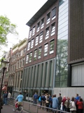 ひとまずB&Bを出てきた私たちは、都会に車で入ることにうんざりしていたので、トラムを使って街の中心へ向かうことに。明日もそうするつもりだ。チケットは運転手からでも買えるが、ちょっと割高。トラムの中に券売機がついていて、一日券なども買えるようなのでジッと見ていたら、「何かわからないことでも?」と側にいた日本人のおじさんに声をかけられた。明日、一日アムステルダムを観光することを話すと、「回数券を二人で使った方が得かもしれないよ」と教えてくれた。15枚綴りで街の中心ゾーンは一人2枚とのこと。二人なら2枚目と4枚目の部分に刻印すれば良いらしい。仕事で7年もオランダに住んでいるというその男性でも、「車は使わず、もっぱらこれ」と手持ちの回数券を見せてくれた。これも、運転手から買えるそうだ。 さて、中央駅に到着したので、東京駅のモデルになったというそれを写真に収め、インフォに寄って、回数券を買ったり、いろんなパンフをもらったりした後、夕食を食べにダム広場の方へ歩き出した。ステーキ屋に入って食事をした後、ダム広場へ。ここも観覧車や絶叫マシンなど、仮設遊園地が設置されていた。乗り場でトラムを待っていたら、私たちが乗ろうとしていた5番の表示が電光掲示板から突然消えた。ぶうぶう言いつつ、乗り場を替えて結局23番で帰ってきたのであった。 B&Bのオーナーさんは、親切な人だった。「ごめんなさいね。息子が一人の時は、知らない人を部屋に入れないように言ってるの」という言葉に、だんなは苦笑していた。部屋も清潔で申し分ないが、トイレだけが共用というのが、ちょっと不便。それに普通のお宅なので、あまり大きな音を立てないよう気を使った。 ●アムテルダム '04年4月24日(土) なかなか美味しい朝ごはんを食べた後、観光しに出かけた。外は曇り空。本当はこの日にキューケンホフに行く方が、パレードを見るのに一石二鳥だったのだが、予報が曇りだったので昨日にしたのだ。そうしておいて本当に良かった。 さて、宿のあたりは一人3枚使わねばならないゾーンなので、二駅分歩いてから(笑)トラムに乗った。昨日既に6枚使ったので、残り9枚。一人往復4枚、2人で計8枚使うよう計算したのだ。 最初の目的地、アンネ・フランク・ハウスは、まだ朝早いせいか、すぐに入れた。ナチスのユダヤ人迫害の犠牲者であるアンネ・フランクが書いた、「アンネの日記」の舞台となった所だ。もちろん本を読んだこともあるし、確か中学の英語の教科書にも載っていた。腐ったほうれん草を食べたという記述が、とても悲しかったのを覚えている。もともとは裕福な家庭であったフランク家は、1940年にドイツがオランダを占領したことで生活が一変、1942年7月から約2年間、父親が経営する会社の一角に隠れ住んだ。アンネはもちろん、姉のマルゴーも優秀であったらしい。本当に、世が世ならという感じだ。また、彼らを支えた会社の従業員達(倉庫で働く人々は知らなかったそう)の心の重圧も相当なものだったろう。それに最後まで耐えたのはフランク一家の人徳だったのかな、とも思った。見学が終わって外に出てみると、案の定行列ができていた。ここは人気スポットなので、朝早くか夕方以降に訪れた方が良さそうだ。