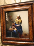 次の目的地へは、カナルバスの切符(だんなが、国立博物館チケット付をチョイス)を買って船で移動することに決めていた。運河を走るこの水上バスは、一日券のみで16ユーロとお高いが、観光客には有効な交通手段だ。美術館めぐりをした後は、これを使って運河をクルーズするつもり。さて目的地の船着場に着き、国立博物館へ行ってみると、ここもすごい行列ができている。チケットを持っていたので、だんなが入り口近くにいる係員に聞きにいったところ、大丈夫と言うので一応並んでいた私を呼びに来た。ところが、いざ入ろうとするとダメという返事。訳わかんねーよっ。仕方なく列に再度並び直し、不機嫌な状態でかなり待つことになってしまった。まあしかし、入ってしまえばこっちのもの。大好きなフェルメールの絵の前に立つ頃には、大分機嫌が直っていた。フェルメールの描く静謐な空間が好きだ。絵の中に描かれた女性は、それぞれ手紙を読んだりミルクを注いだりと、何がしか音を立てているはずなのに、それがより静けさを強調しているようである。ちなみに、映画「真珠の耳飾りの少女」のモデルとなった絵は、デン・ハーグの美術館にある。機会があれば、是非見てみたいものだ。 最後にレンブラントの最高傑作「夜警」をじっくり見て、博物館を出た。 |