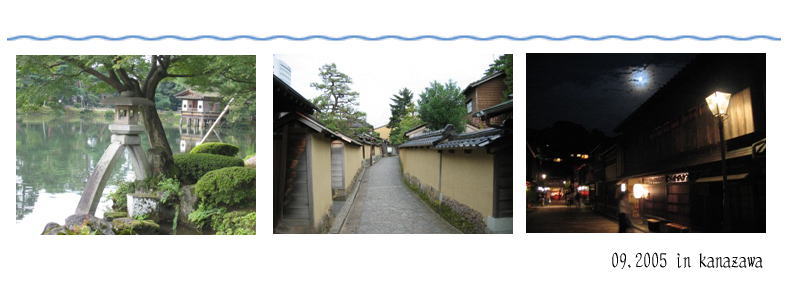 | 兼六園を出てからは、美術館や博物館が立ち並ぶインテリ通りを歩き、石段を降りて本多町まで歩いた。だんなが、お腹すいたと訴えるので、どこかで昼食を取ろうと思うが、なかなかお店が見つからない。やっと見つけたカフェなるものに入ってみたら、なんかスゴイ場末チックな雰囲気のスナックで、正直ビビる。が、ママさんは優しげだったし、男性だけとは言え人が入っていたので、ランチセットを頼むことにした。これが結構な量でそこそこおいしかったので、ホッとしながら食べる。食後にアイスコーヒーを飲んでいたら、ママさんが話しかけてきて、「いしかわ観光ぱすぽーと」なる冊子を2冊くれた。観光名所や、様々なお店で割引になるという。これが後々役に立つことになるので、あそこの店に入って良かったなあと思う。ママさんは、私の人生の中で「袖擦れ合った縁でいい人」ベスト3に入るほどの逸材だったしね。最初はホントに引いたけど(笑)。 |