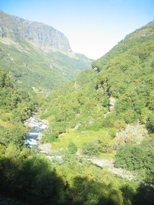 | 登山列車フロム鉄道は、全長20キロの急勾配を約1時間かけて進む。途中、ヒョース滝で一時停車。みんなが外に出て一通り写真を撮り終った後、終点フロムへ向けて列車は出発した。切りだった渓谷が荒々しい風景が続く。みんな、あっち行ったりこっち行ったりして写真を撮りまくっていた。窓は汚れていて、かつ開かないところもあるので、開くかどうか確認してから席をゲットした方が良いかもしれない。 終点近くには氷河が残る山並みも見えてくる。フィヨルドへの期待がますます高まってきた。 |