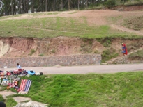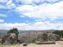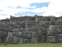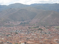 インカ帝国時代、クスコはピューマの形をしていたのだが、高台にあるサクサイワマンは、その頭の部分に位置している。巨石を積み上げた3段の城壁はジグザグしていて、ピューマの牙を表すと言われている。1536年、インカ帝国軍が起死回生の隆起をした時ここに陣取り、クスコのスペイン人を震え上がらせた、とガイドブックには書かれている。ここらの石は、建築材料としてスペイン人に持ち去られてしまい、頂上に三つあった塔も、今は土台を残して跡形もない。ただ、この遺跡からはクスコの町並みが見下ろせて、とても良い眺めであった。 |